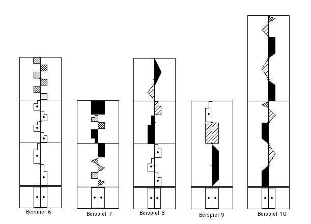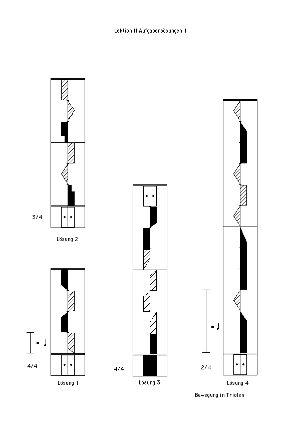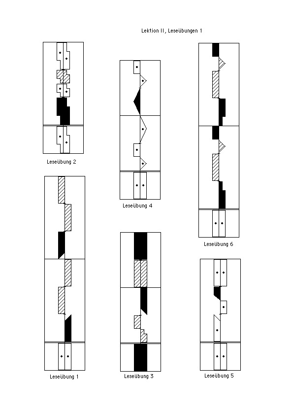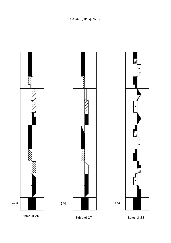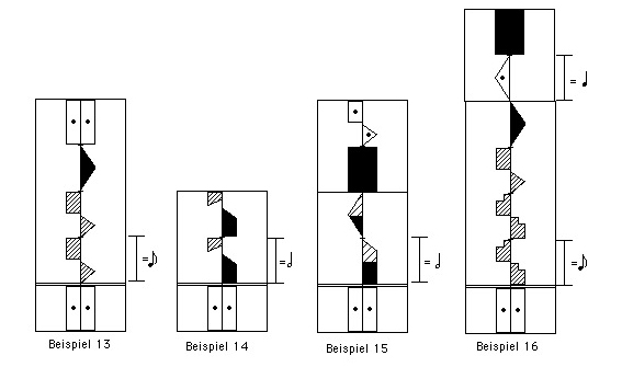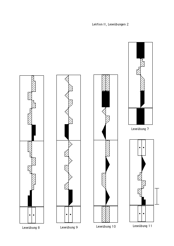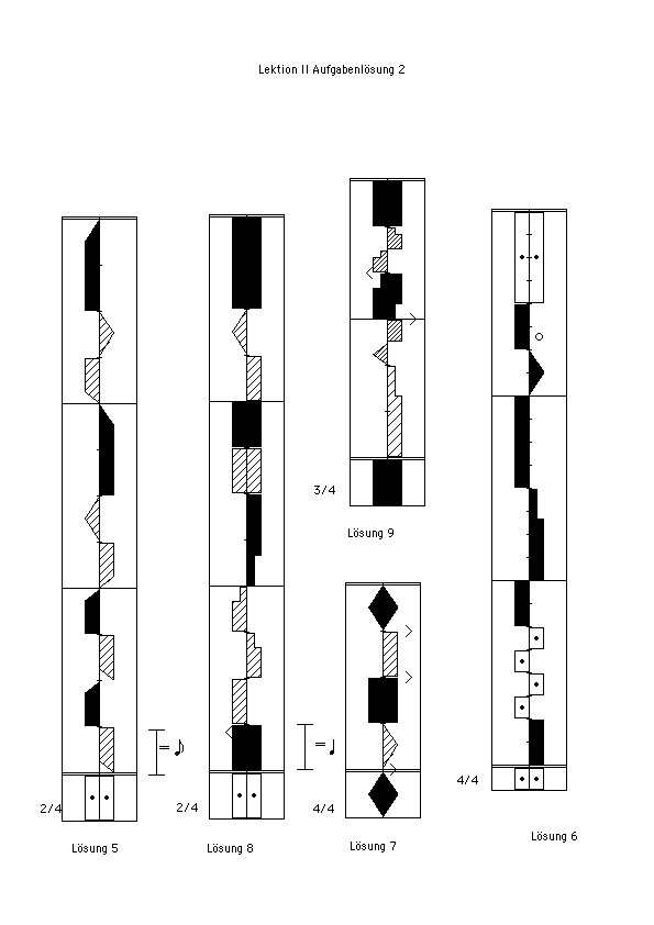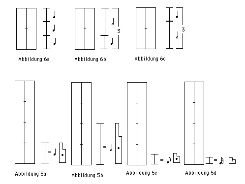 2. Das Schreiben von Bewegungen unterschiedlicher Zeitdauer (Abbildung 4, Beispiele 6 – 10 und weitere, Leseübungen ab 2)