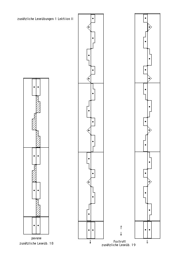 1. Die drei Höhengrade der Richtungszeichen bei Gewichtsübertragungen/Schritten (Abbildungen 1 – 3, Beispiele 1 – 5 und weitere, Leseübungen ab 1)