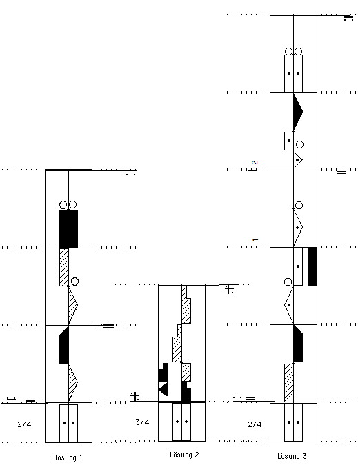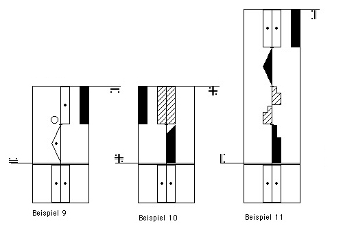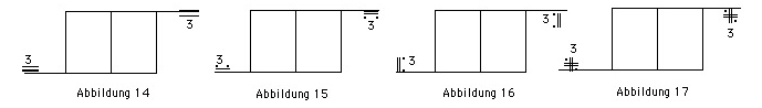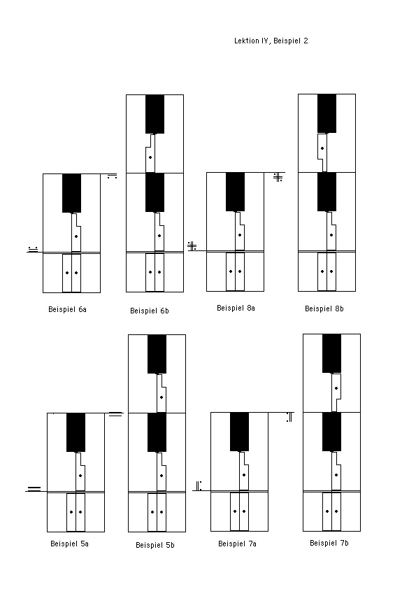 Abbildungen 4–5 weitere Möglichkeiten der Schreibweise von Teilbelastungen durch verschiedene Höhengrade der Gewichtsbelastung. Das Gewicht ist immer mehr auf der Seite, wo die niedrigere Höhenlage steht.