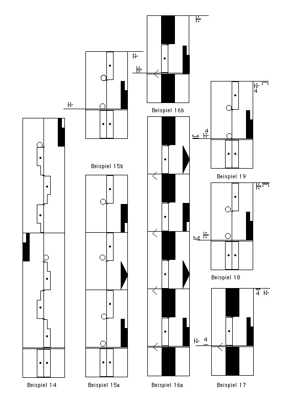 8. Die Wiederholungszeichen für die sogenannten en croix Trainingsübungen des Klassischen Tanzes sind spezielle Entsprechungszeichen, deren Regeln mit denen der äußeren Wiederholungszeichen übereinstimmen. (Beispiele 15b, 16b, 17 – 19)
