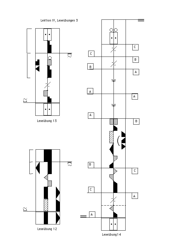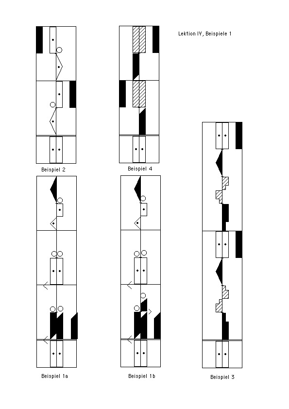 (Die Auswirkungen der Entsprechungs-/Wiederholungszeichen auf Drehungen werden in Lektion XII, Abbildungen 24 a, b und c gezeigt.)