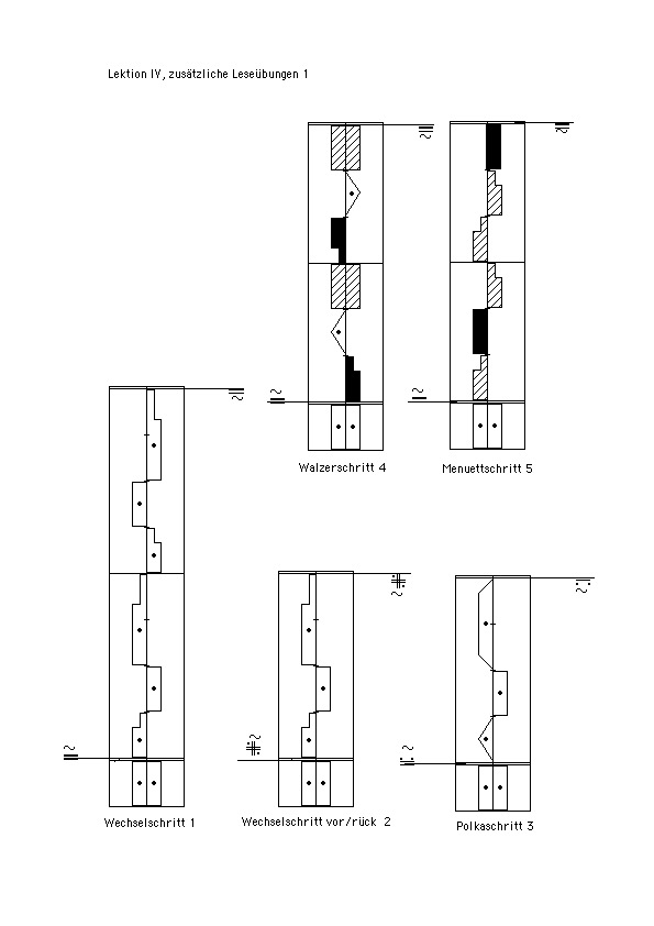 Anmerkung: Die Regeln der Reprise werden in den folgenden Beispielen und Leseübungen aus Platzgründen in relativ kurzen Bewegungsfolgen aufgezeigt.